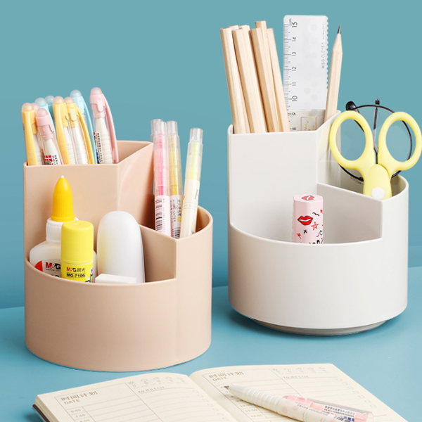 - 모던 360도 회전 원형 3칸 연필꽂이