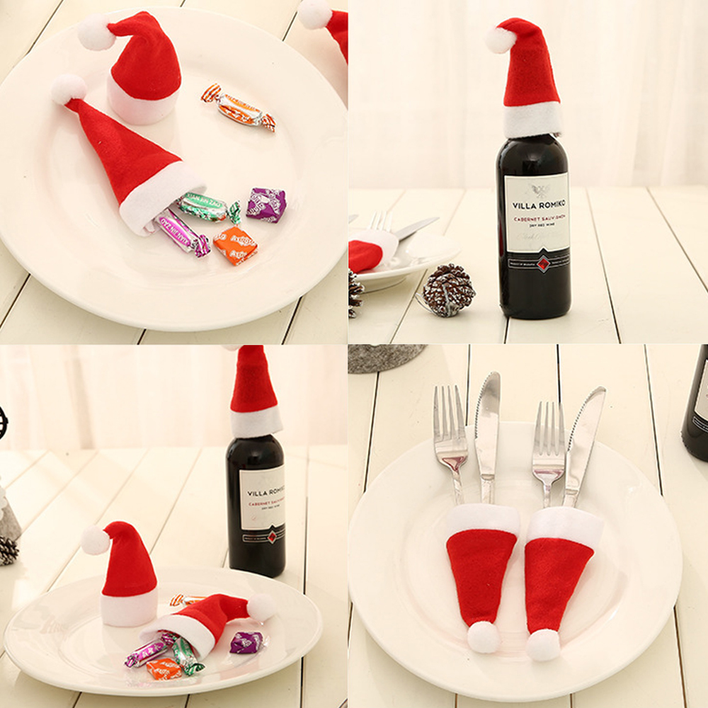 - fooi 1+1 크리스마스 산타모자 나이프 식기커버 테이블웨어 커트러리