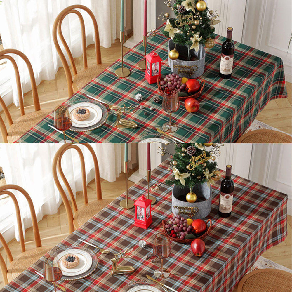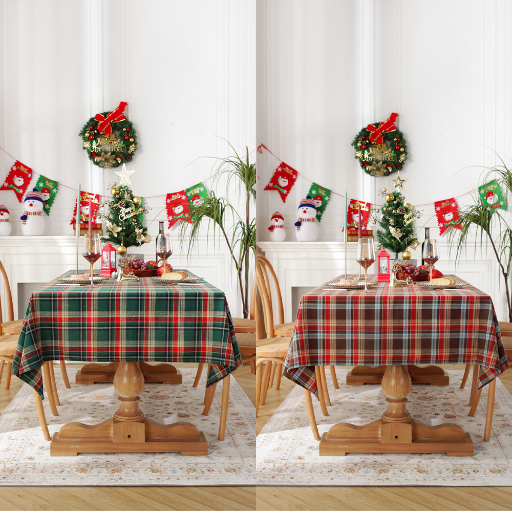 - fooi 140 x 200cm 크리스마스 홈파티 테이블러너 체크 식탁보