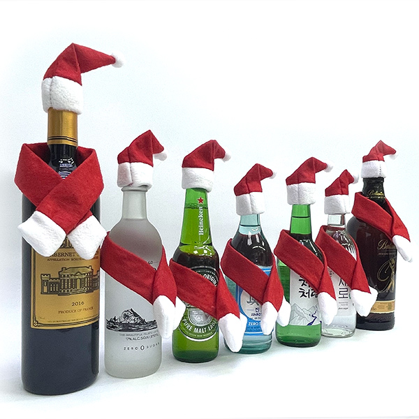 - fooi 크리스마스 미니 산타 와인 커버 모자 목도리세트 맥주 소주 술병 커버
