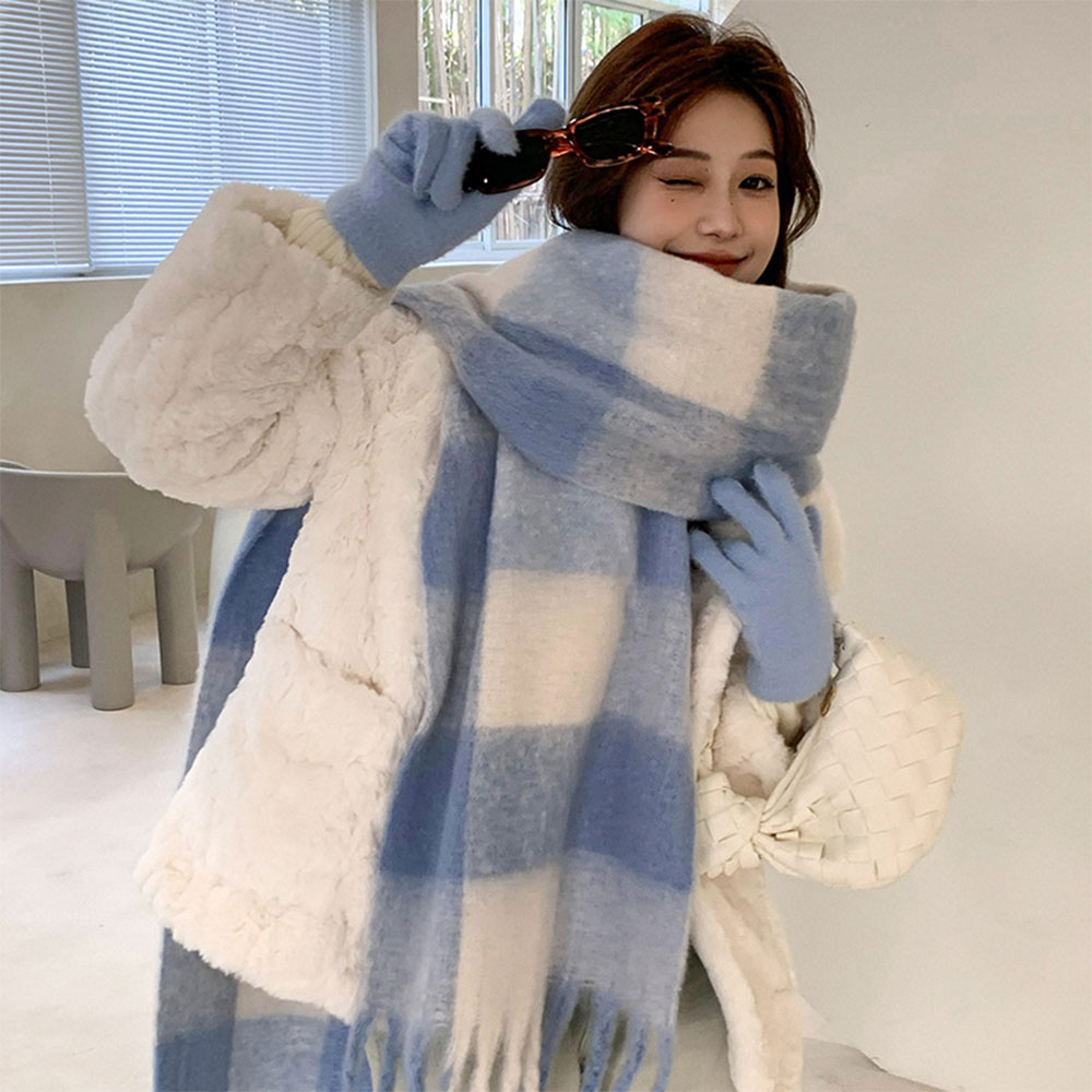 fooi 겨울 따뜻한 체크 양면 숄 머플러 도톰한 목도리