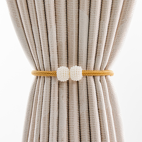 - fooi 진주 버클 고정 커튼 스트랩 커튼 정리 끈 타이백 2PCS