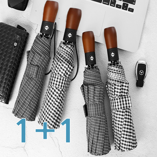 - 1+1 무료배송 명품 원목체크 3단자동우산 넓고튼튼한 럭셔리자동우산