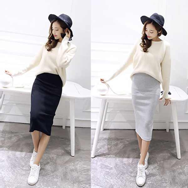 - fooi 골지 니트 롱스커트 고탄력 슬림핏 밴딩 일자핏